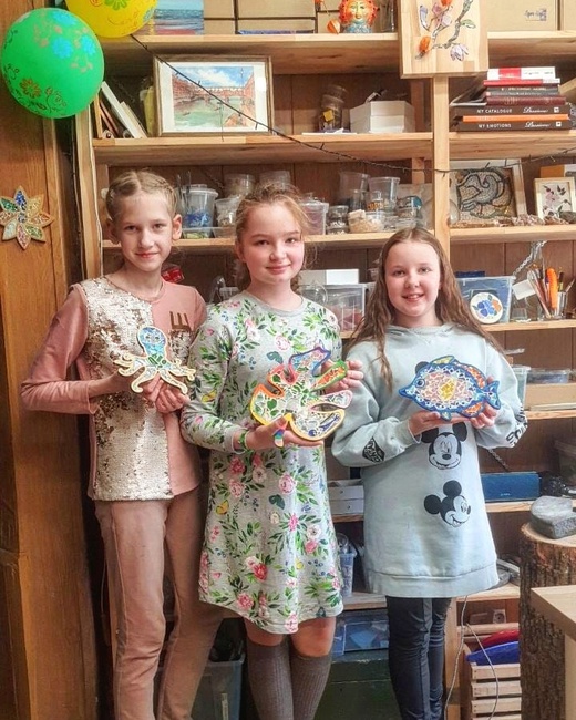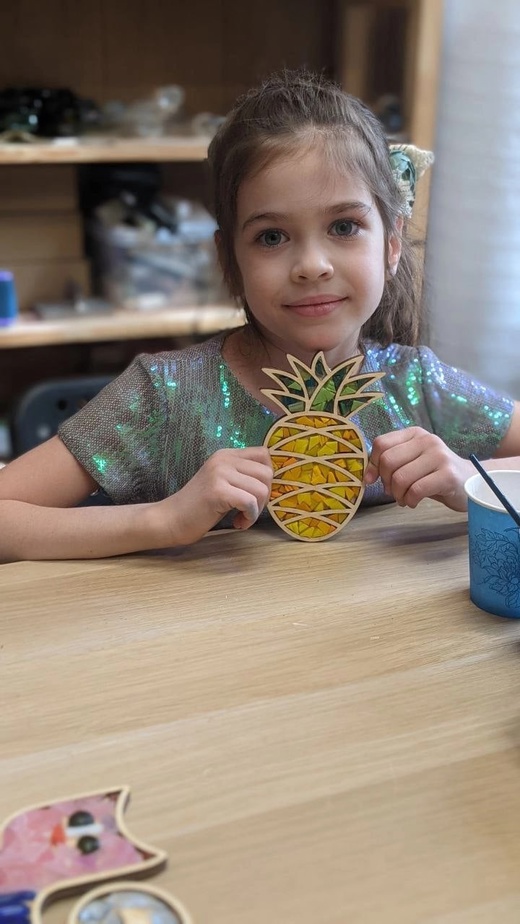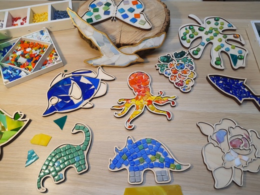 Детские группы работают с уже наколотой мозаикой и запеченными стеклышками.